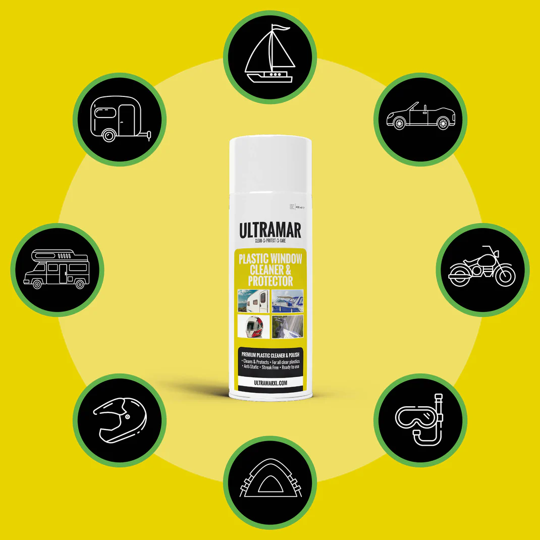 Houd uw plastic ramen schoon en beschermd met de Plastic Window Cleaner & Protector van Ultramar. Deze speciale spray is ideaal voor het reinigen en beschermen van verschillende soorten plastic ramen, zoals tentramen, plexiglas, plastic schermen en ramen in boot- en cabriokappen. Met slechts één snelle behandeling maakt u uw ramen schoon en vuilafstotend, waardoor vingerafdrukken, zand, stof en vet geen kans meer maken.